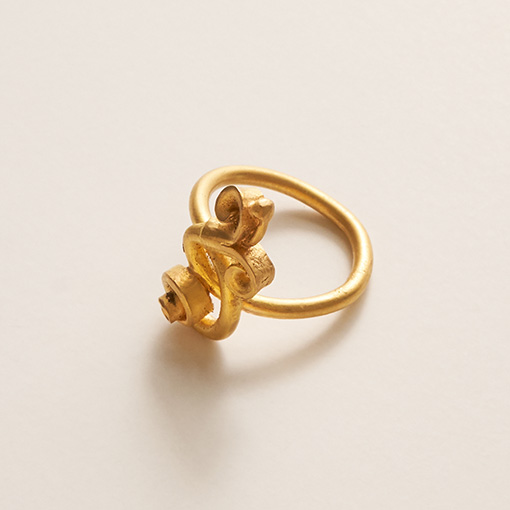 Aus einem Runddraht, der sich oben zu einer kleinen Blüte entwickelt und unten in einer lockeren Spirale endet. 9,4 gr. 900er Gold