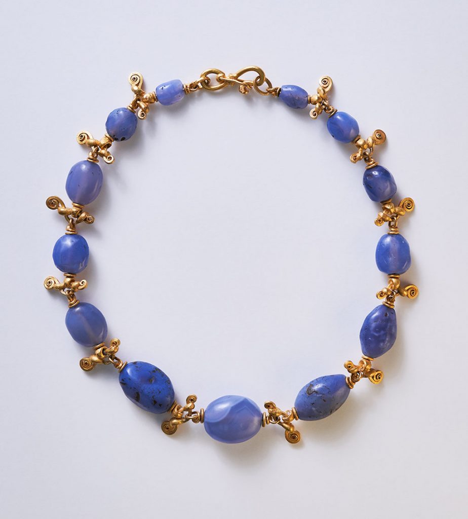 Mit dreizehn Chalcedonperlen aus Amlasch am Kaspischen Meer, Nordiran um 1000 v. u. Zr.