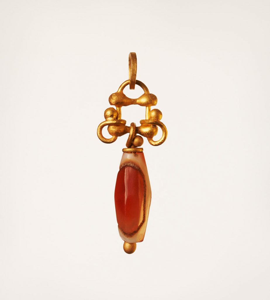 Mit einer facettierten, römischen Augenperle aus einer Karneol- und einer Achatschicht, 2.-3. Jh. n.u. Zr. 4,7 gr. 900er Gold