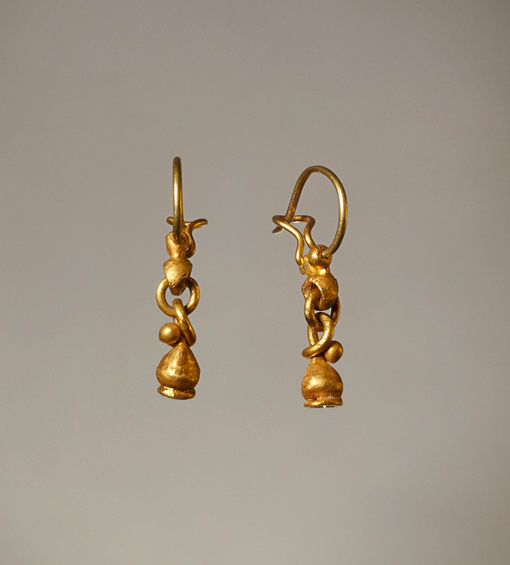 Mit je einer unten offenen Frucht. 6,4 gr. 900er und 750er Gold