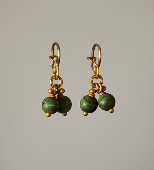 Mit vier kugeligen Malachitperlen. Islamisch, 12./13.Jh. 7,4 gr. 900er u. 750er Gold
